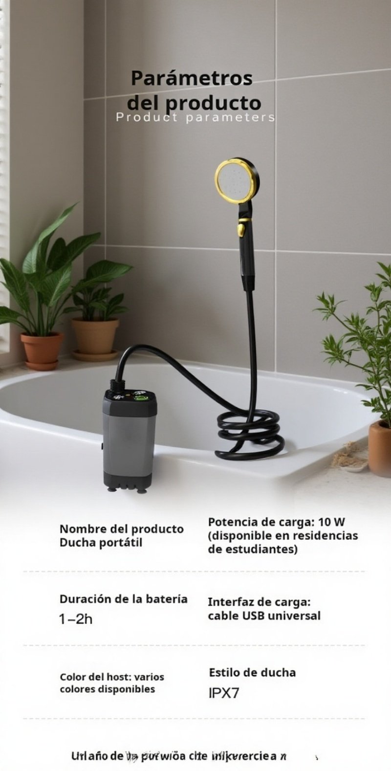 ● Disfruta de una ducha caliente en cualquier lugar con el cabezal de ducha eléctrico portátil, ideal para camping, exteriores y dormitorios. ● Instalación fácil y rápida, sin necesidad de herramientas complicadas, perfecta para quienes buscan comodidad y practicidad en sus actividades al aire libre. ● Diseño compacto y ligero que facilita su transporte y almacenamiento, permitiéndote llevar el confort de una ducha a todas partes. ● Ahorro de energía y agua gracias a su eficiente sistema eléctrico, cuidando tu bolsillo y el medio ambiente al mismo tiempo. ● Materiales resistentes y seguros, garantizando una experiencia de baño confiable y duradera en cualquier entorno.